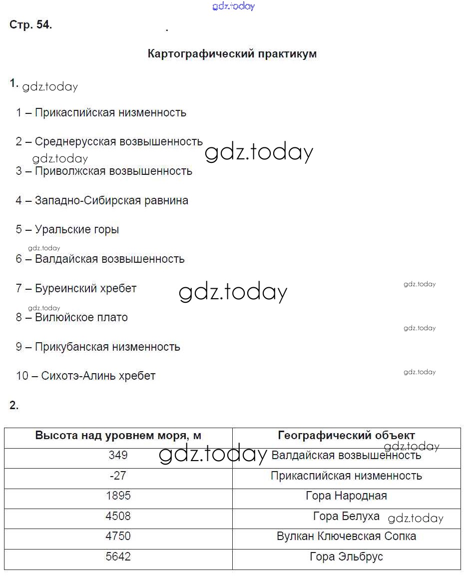 На страницах сайта gdz.today вы найдете учебный и вспомогательный материал, направленный на улучшения знаний школьной программы. ГДЗ - онлайн мир знаний Решение к части 1. Страницы 54 Рабочей тетради по Географии для 8 класса Домогацких Русское слово Инновационная школа 2017