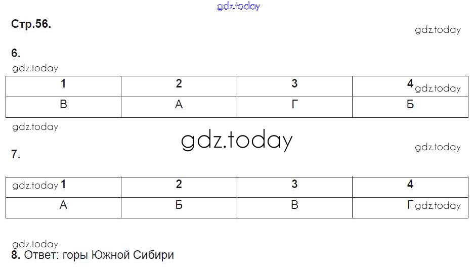На страницах сайта gdz.today вы найдете учебный и вспомогательный материал, направленный на улучшения знаний школьной программы. ГДЗ - онлайн мир знаний Решение к части 1. Страницы 56 Рабочей тетради по Географии для 8 класса Домогацких Русское слово Инновационная школа 2017