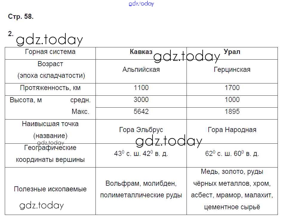 На страницах сайта gdz.today вы найдете учебный и вспомогательный материал, направленный на улучшения знаний школьной программы. ГДЗ - онлайн мир знаний Решение к части 1. Страницы 58 Рабочей тетради по Географии для 8 класса Домогацких Русское слово Инновационная школа 2017