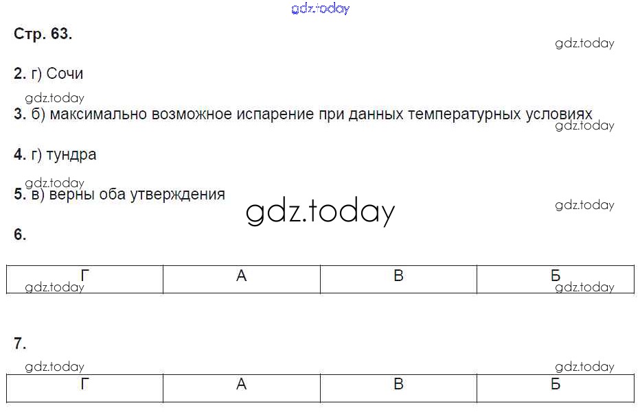 На страницах сайта gdz.today вы найдете учебный и вспомогательный материал, направленный на улучшения знаний школьной программы. ГДЗ - онлайн мир знаний Решение к части 1. Страницы 63 Рабочей тетради по Географии для 8 класса Домогацких Русское слово Инновационная школа 2017