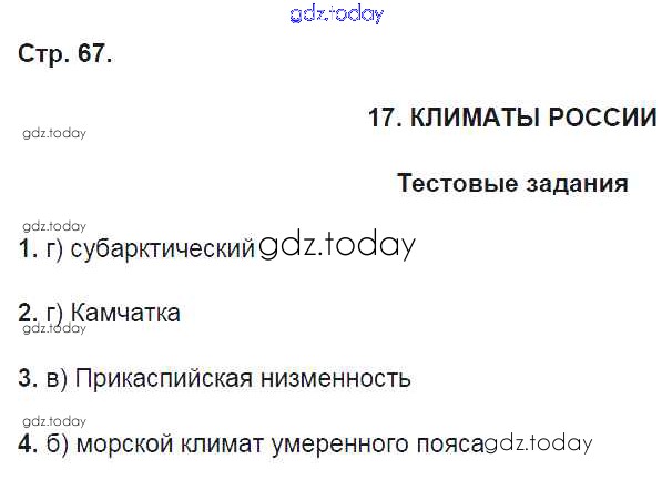 На страницах сайта gdz.today вы найдете учебный и вспомогательный материал, направленный на улучшения знаний школьной программы. ГДЗ - онлайн мир знаний Решение к части 1. Страницы 67 Рабочей тетради по Географии для 8 класса Домогацких Русское слово Инновационная школа 2017
