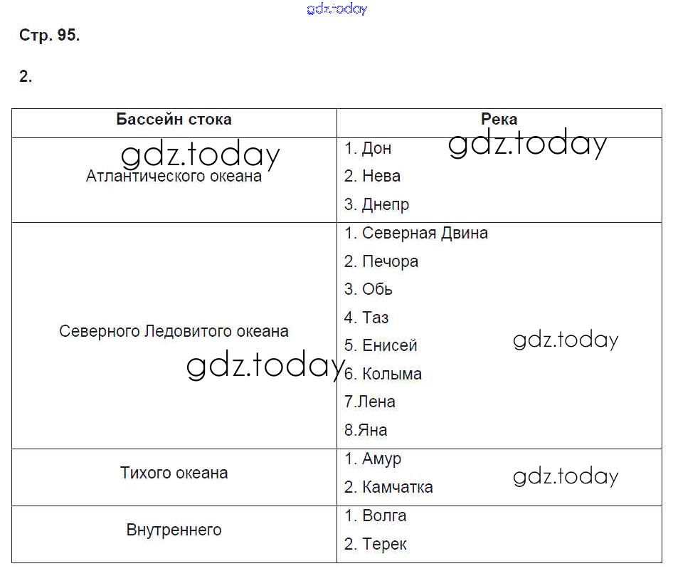 На страницах сайта gdz.today вы найдете учебный и вспомогательный материал, направленный на улучшения знаний школьной программы. ГДЗ - онлайн мир знаний Решение к части 1. Страницы 95 Рабочей тетради по Географии для 8 класса Домогацких Русское слово Инновационная школа 2017