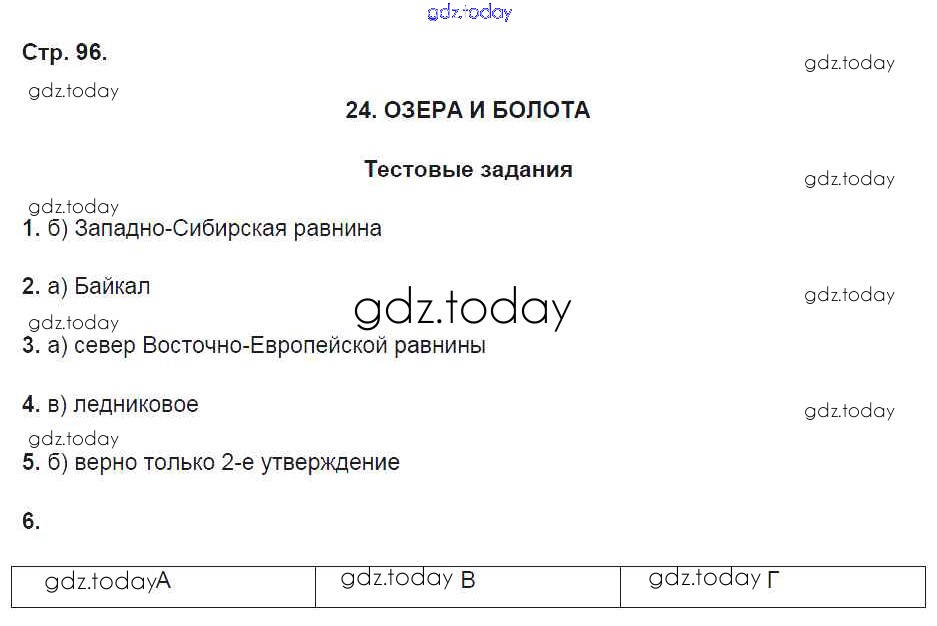 На страницах сайта gdz.today вы найдете учебный и вспомогательный материал, направленный на улучшения знаний школьной программы. ГДЗ - онлайн мир знаний Решение к части 1. Страницы 96 Рабочей тетради по Географии для 8 класса Домогацких Русское слово Инновационная школа 2017