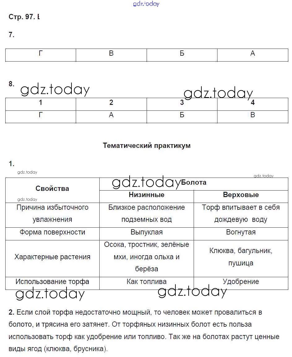 На страницах сайта gdz.today вы найдете учебный и вспомогательный материал, направленный на улучшения знаний школьной программы. ГДЗ - онлайн мир знаний Решение к части 1. Страницы 97 Рабочей тетради по Географии для 8 класса Домогацких Русское слово Инновационная школа 2017