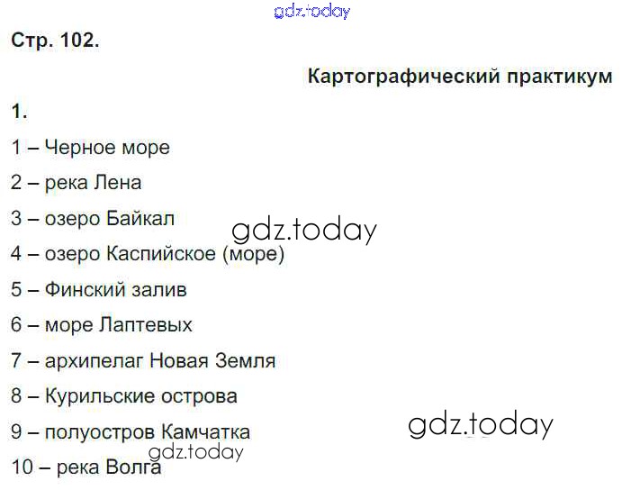 На страницах сайта gdz.today вы найдете учебный и вспомогательный материал, направленный на улучшения знаний школьной программы. ГДЗ - онлайн мир знаний Решение к части 2. Страницы 102 Рабочей тетради по Географии для 8 класса Домогацких Русское слово Инновационная школа 2017