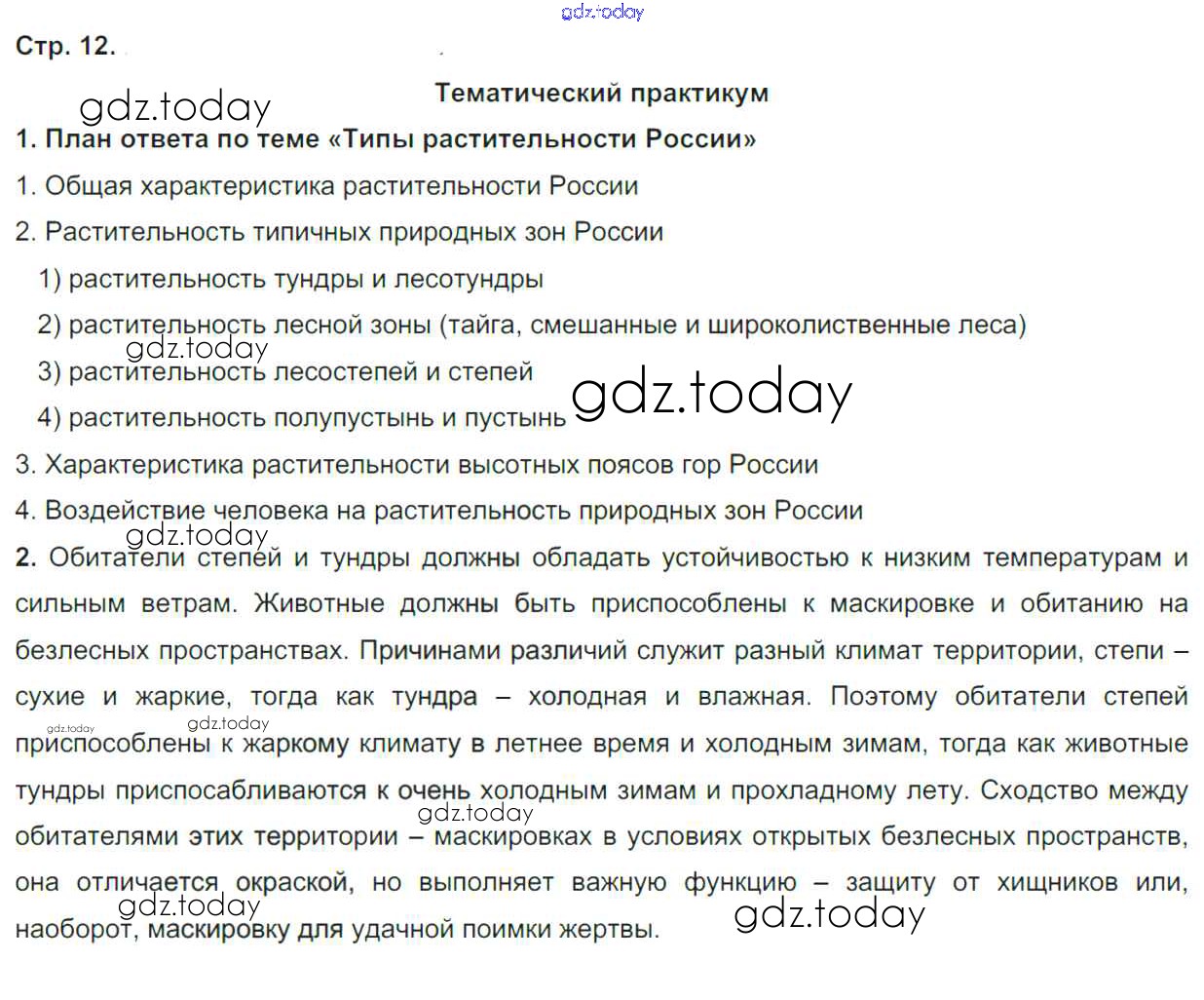 На страницах сайта gdz.today вы найдете учебный и вспомогательный материал, направленный на улучшения знаний школьной программы. ГДЗ - онлайн мир знаний Решение к части 2. Страницы 12 Рабочей тетради по Географии для 8 класса Домогацких Русское слово Инновационная школа 2017