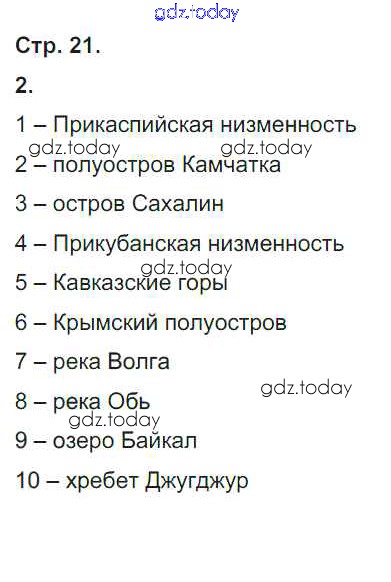 На страницах сайта gdz.today вы найдете учебный и вспомогательный материал, направленный на улучшения знаний школьной программы. ГДЗ - онлайн мир знаний Решение к части 2. Страницы 21 Рабочей тетради по Географии для 8 класса Домогацких Русское слово Инновационная школа 2017