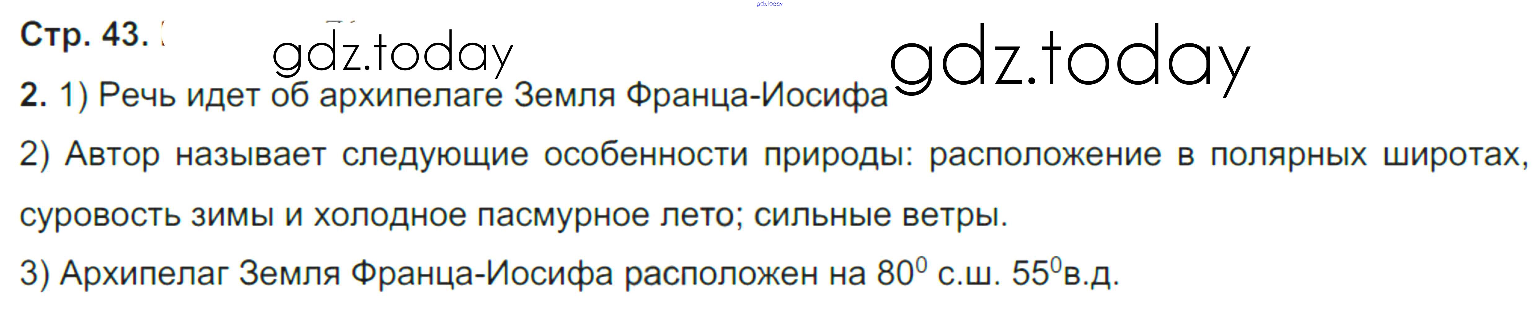 На страницах сайта gdz.today вы найдете учебный и вспомогательный материал, направленный на улучшения знаний школьной программы. ГДЗ - онлайн мир знаний Решение к части 2. Страницы 43 Рабочей тетради по Географии для 8 класса Домогацких Русское слово Инновационная школа 2017