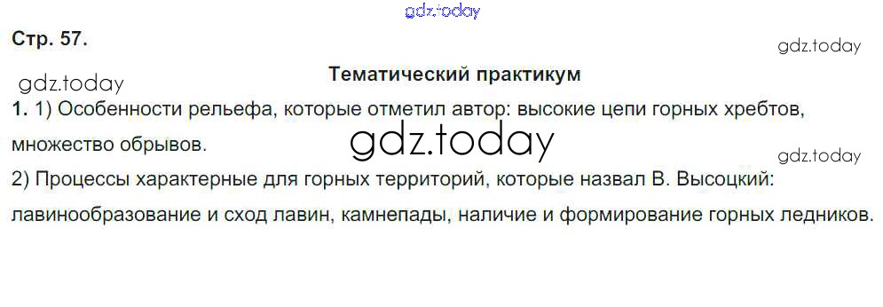 На страницах сайта gdz.today вы найдете учебный и вспомогательный материал, направленный на улучшения знаний школьной программы. ГДЗ - онлайн мир знаний Решение к части 2. Страницы 57 Рабочей тетради по Географии для 8 класса Домогацких Русское слово Инновационная школа 2017