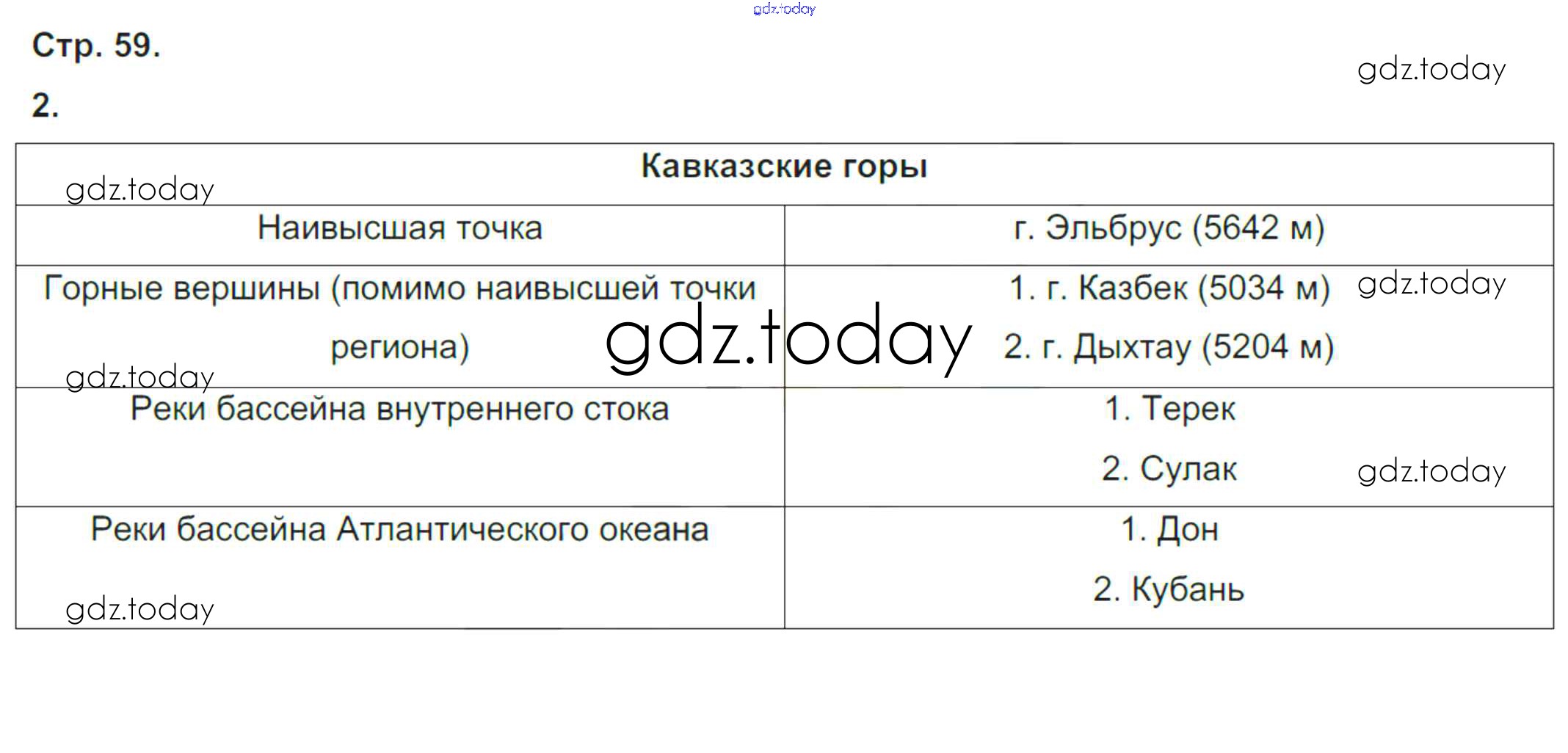 На страницах сайта gdz.today вы найдете учебный и вспомогательный материал, направленный на улучшения знаний школьной программы. ГДЗ - онлайн мир знаний Решение к части 2. Страницы 59 Рабочей тетради по Географии для 8 класса Домогацких Русское слово Инновационная школа 2017