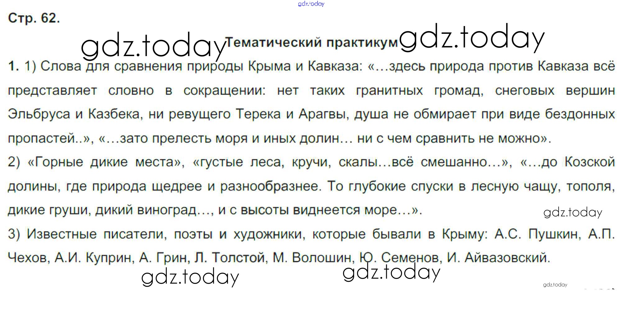 На страницах сайта gdz.today вы найдете учебный и вспомогательный материал, направленный на улучшения знаний школьной программы. ГДЗ - онлайн мир знаний Решение к части 2. Страницы 62 Рабочей тетради по Географии для 8 класса Домогацких Русское слово Инновационная школа 2017
