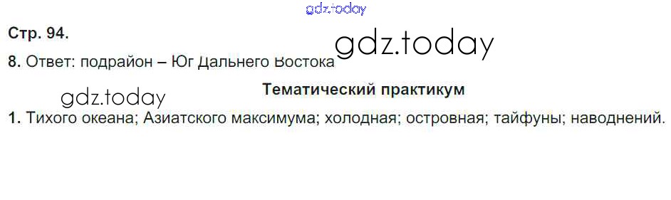 На страницах сайта gdz.today вы найдете учебный и вспомогательный материал, направленный на улучшения знаний школьной программы. ГДЗ - онлайн мир знаний Решение к части 2. Страницы 94 Рабочей тетради по Географии для 8 класса Домогацких Русское слово Инновационная школа 2017