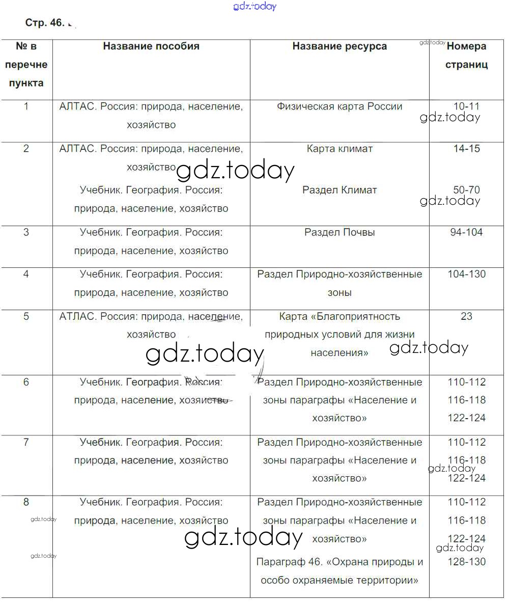 На страницах сайта gdz.today вы найдете учебный и вспомогательный материал, направленный на улучшения знаний школьной программы. ГДЗ - онлайн мир знаний Страницы (решение) 46 Тетради-практикуму по Географии для 8 класса Ходова Просвещение Сферы 2016