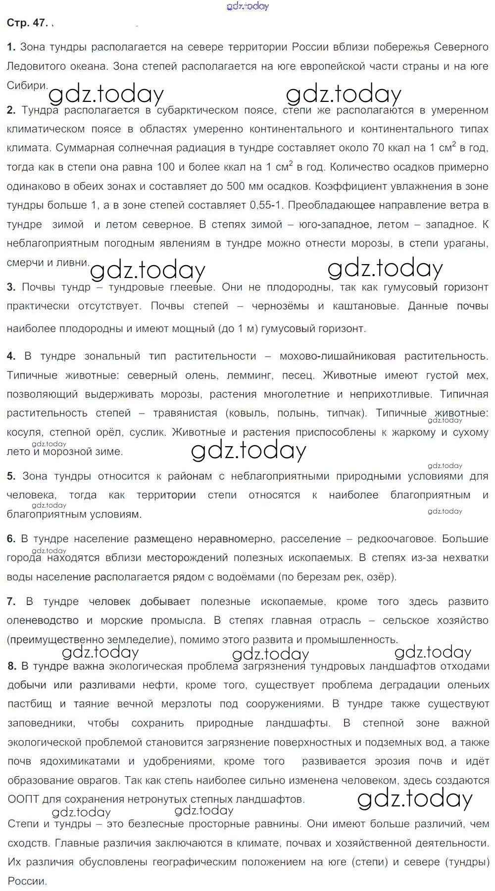 На страницах сайта gdz.today вы найдете учебный и вспомогательный материал, направленный на улучшения знаний школьной программы. ГДЗ - онлайн мир знаний Страницы (решение) 47 Тетради-практикуму по Географии для 8 класса Ходова Просвещение Сферы 2016