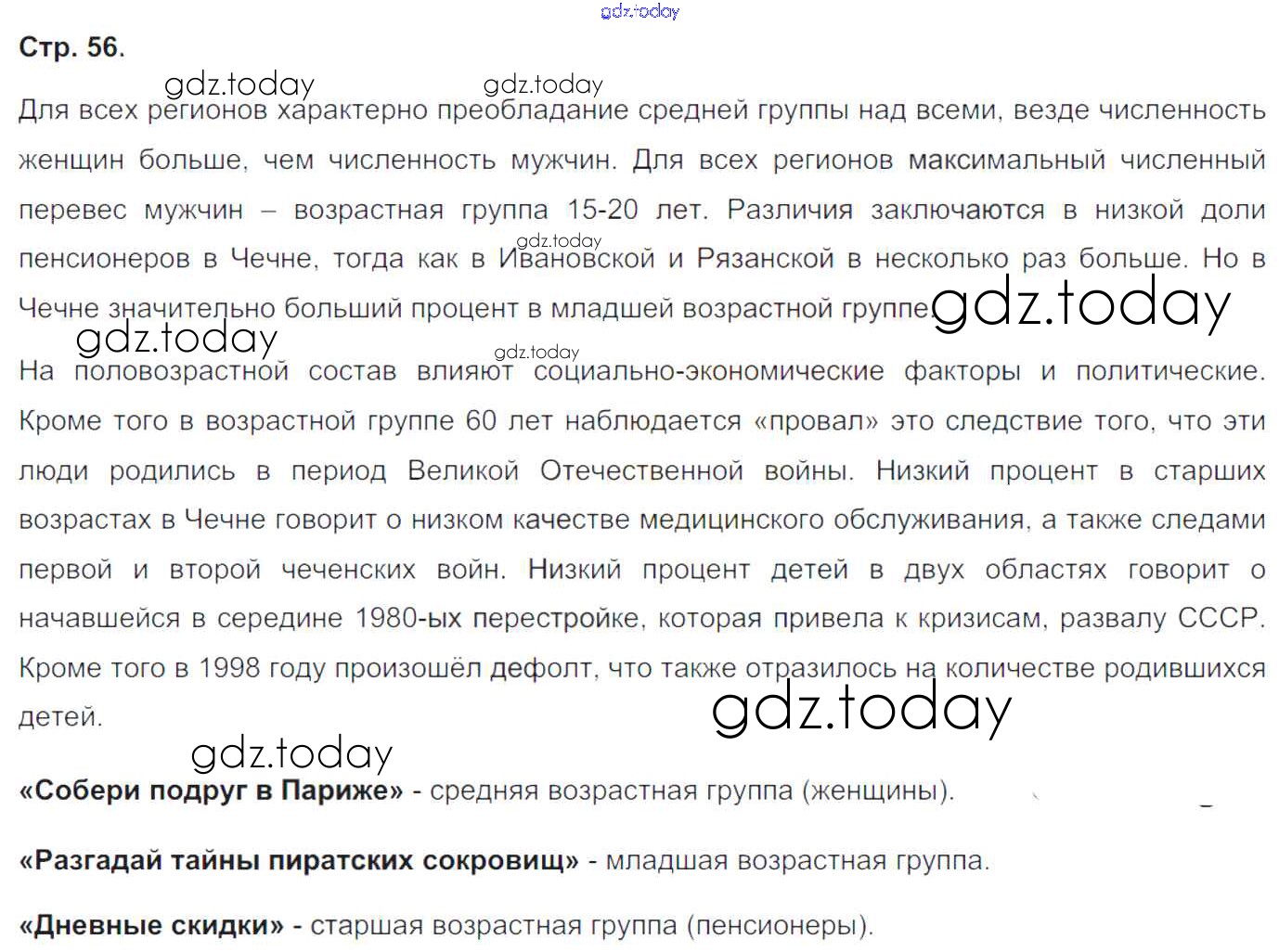 На страницах сайта gdz.today вы найдете учебный и вспомогательный материал, направленный на улучшения знаний школьной программы. ГДЗ - онлайн мир знаний Страницы (решение) 56 Тетради-практикуму по Географии для 8 класса Ходова Просвещение Сферы 2016