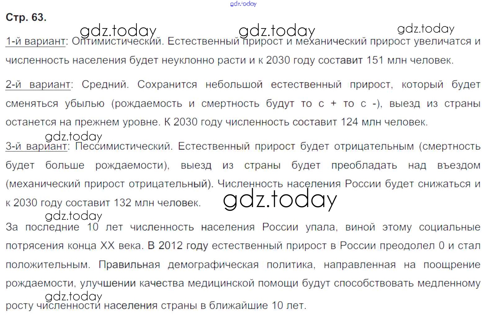 Ответы к Страницы (решение) 63 Тетради-практикуму по Географии для 8 класса Ходова Просвещение Сферы 2016