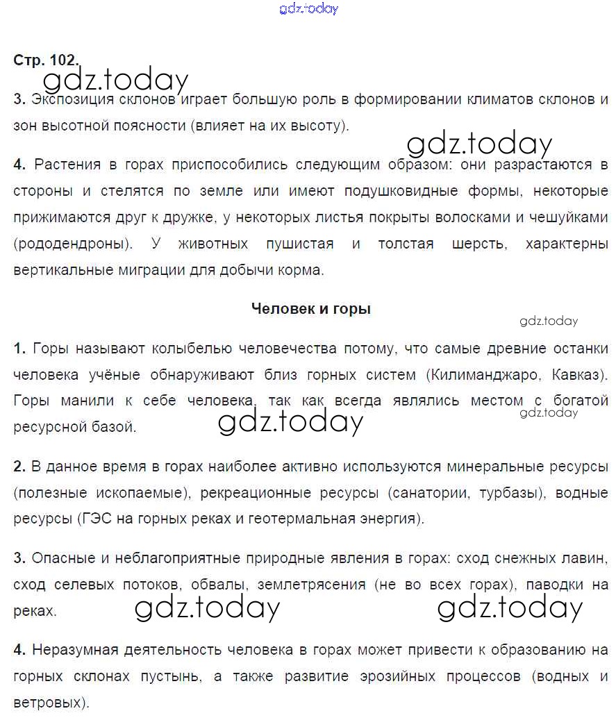 На страницах сайта gdz.today вы найдете учебный и вспомогательный материал, направленный на улучшения знаний школьной программы. ГДЗ - онлайн мир знаний Страницы (решение) 102 Рабочей тетради по Географии для 8 класса Ким, Марченко Дрофа УМК 2016