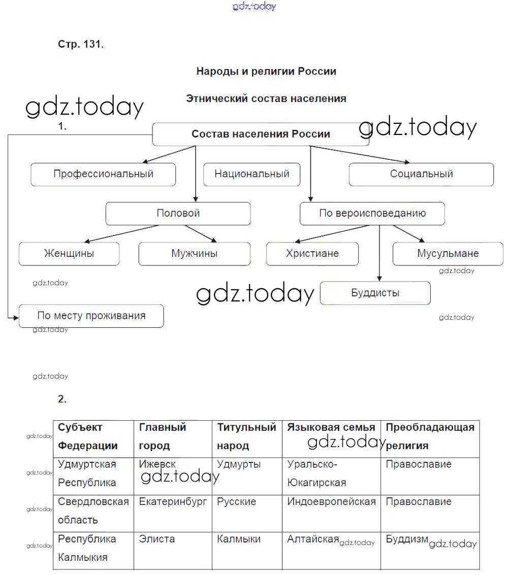 На страницах сайта gdz.today вы найдете учебный и вспомогательный материал, направленный на улучшения знаний школьной программы. ГДЗ - онлайн мир знаний Страницы (решение) 131 Рабочей тетради по Географии для 8 класса Ким, Марченко Дрофа УМК 2016