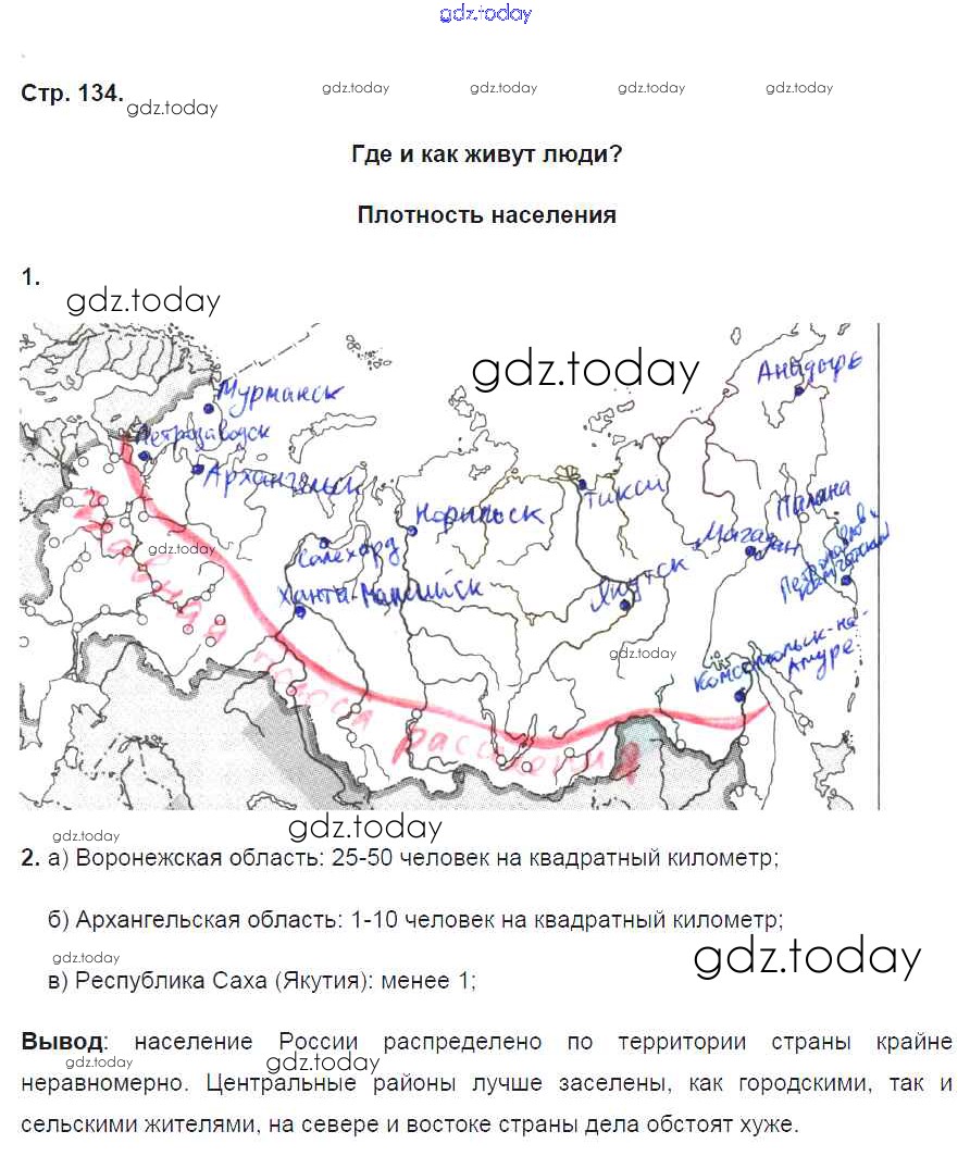 Ответы к Страницы (решение) 134 Рабочей тетради по Географии для 8 класса Ким, Марченко Дрофа УМК 2016