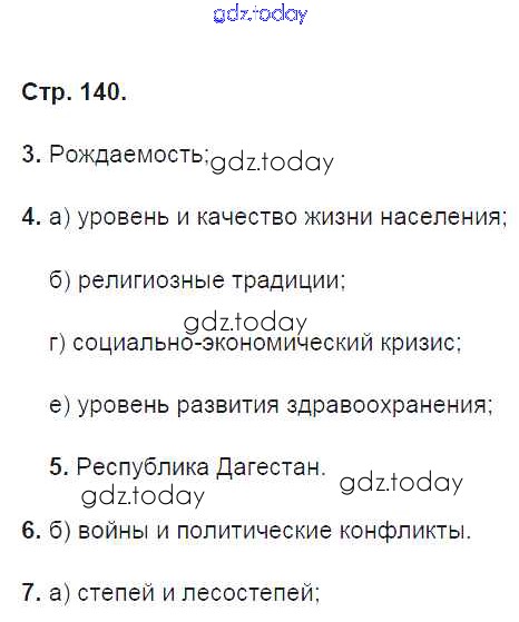 На страницах сайта gdz.today вы найдете учебный и вспомогательный материал, направленный на улучшения знаний школьной программы. ГДЗ - онлайн мир знаний Страницы (решение) 140 Рабочей тетради по Географии для 8 класса Ким, Марченко Дрофа УМК 2016