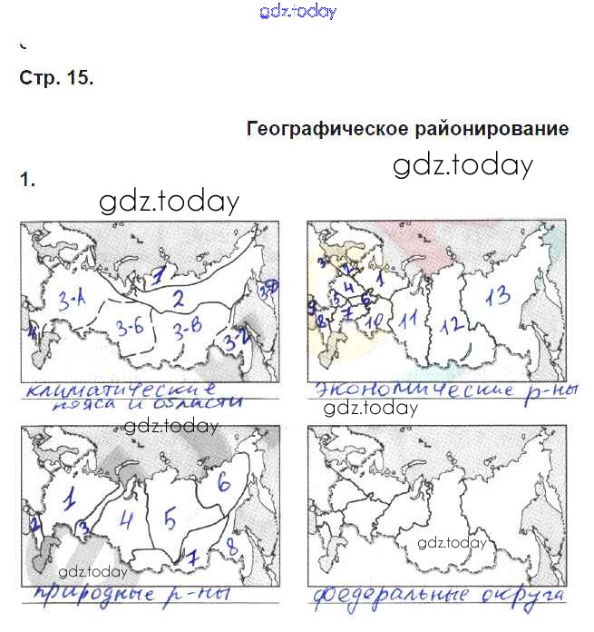 На страницах сайта gdz.today вы найдете учебный и вспомогательный материал, направленный на улучшения знаний школьной программы. ГДЗ - онлайн мир знаний Страницы (решение) 15 Рабочей тетради по Географии для 8 класса Ким, Марченко Дрофа УМК 2016