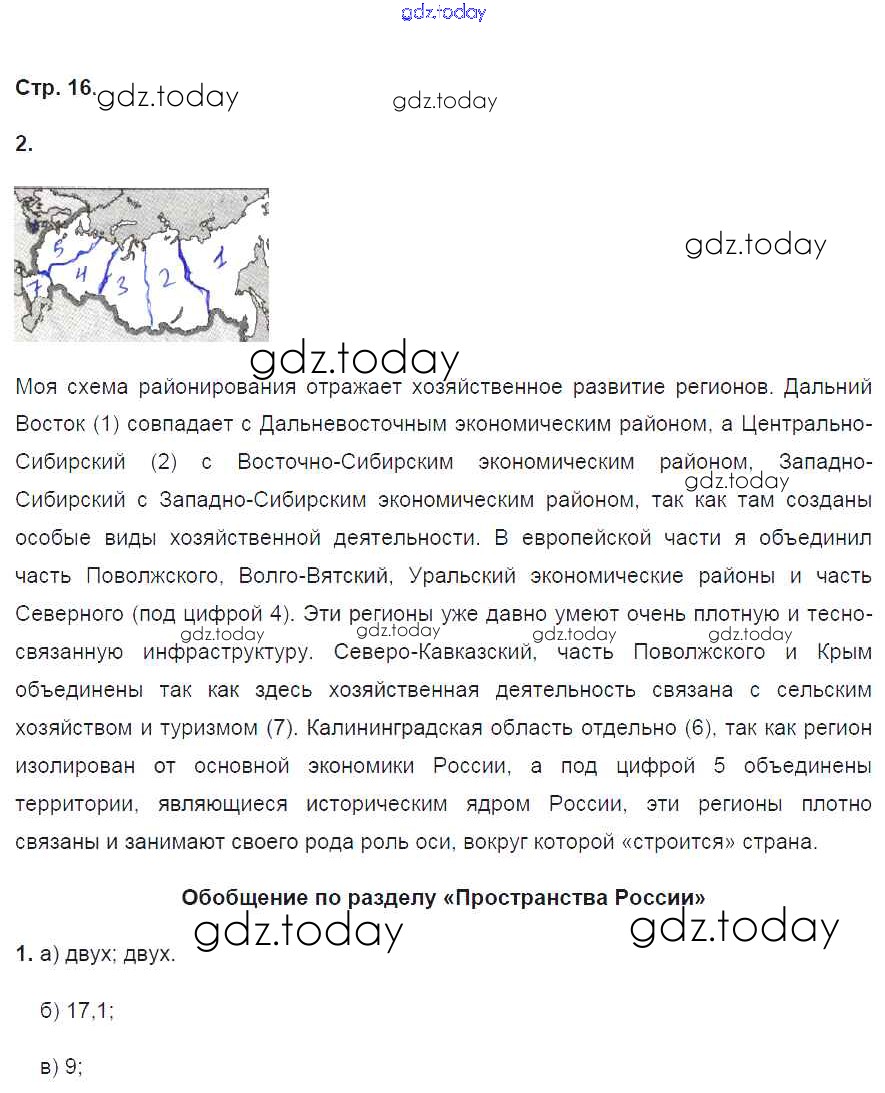 На страницах сайта gdz.today вы найдете учебный и вспомогательный материал, направленный на улучшения знаний школьной программы. ГДЗ - онлайн мир знаний Страницы (решение) 16 Рабочей тетради по Географии для 8 класса Ким, Марченко Дрофа УМК 2016