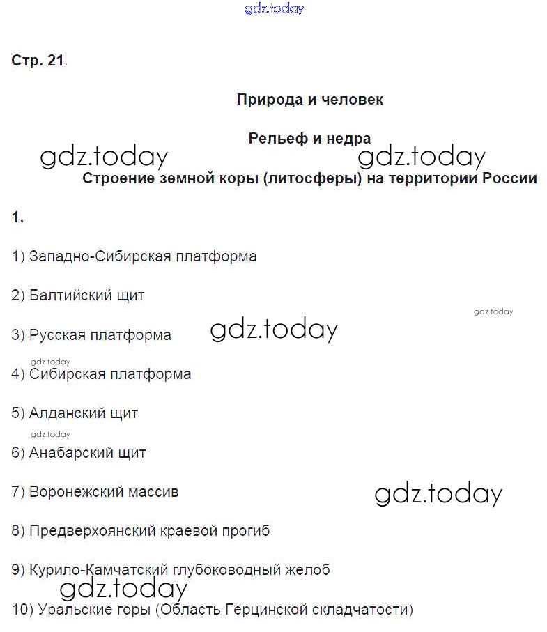 На страницах сайта gdz.today вы найдете учебный и вспомогательный материал, направленный на улучшения знаний школьной программы. ГДЗ - онлайн мир знаний Страницы (решение) 21 Рабочей тетради по Географии для 8 класса Ким, Марченко Дрофа УМК 2016