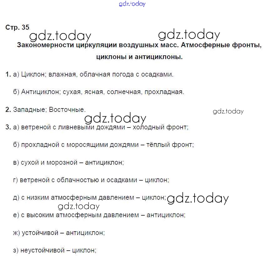 На страницах сайта gdz.today вы найдете учебный и вспомогательный материал, направленный на улучшения знаний школьной программы. ГДЗ - онлайн мир знаний Страницы (решение) 35 Рабочей тетради по Географии для 8 класса Ким, Марченко Дрофа УМК 2016
