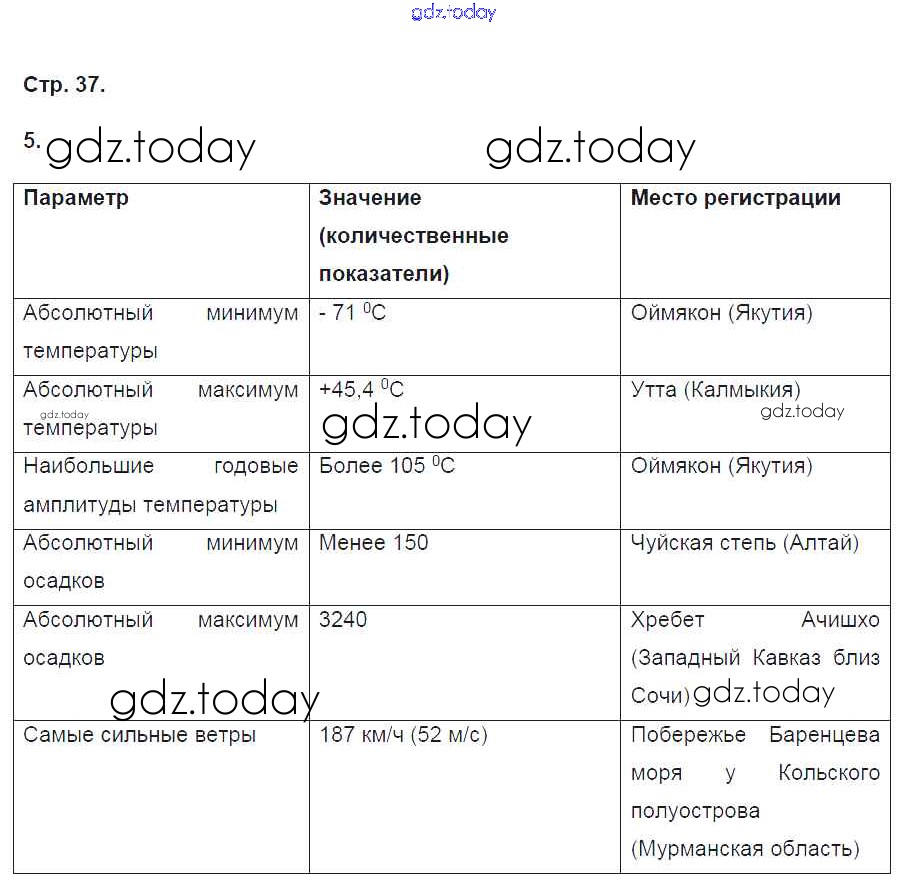 На страницах сайта gdz.today вы найдете учебный и вспомогательный материал, направленный на улучшения знаний школьной программы. ГДЗ - онлайн мир знаний Страницы (решение) 37 Рабочей тетради по Географии для 8 класса Ким, Марченко Дрофа УМК 2016