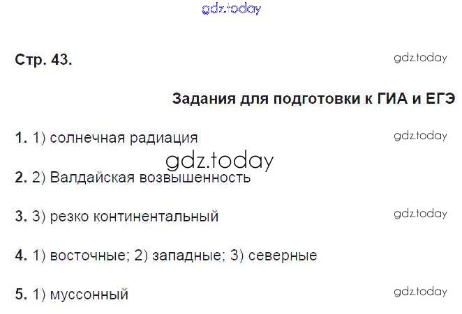 На страницах сайта gdz.today вы найдете учебный и вспомогательный материал, направленный на улучшения знаний школьной программы. ГДЗ - онлайн мир знаний Страницы (решение) 43 Рабочей тетради по Географии для 8 класса Ким, Марченко Дрофа УМК 2016