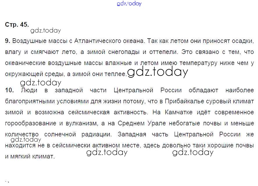 На страницах сайта gdz.today вы найдете учебный и вспомогательный материал, направленный на улучшения знаний школьной программы. ГДЗ - онлайн мир знаний Страницы (решение) 45 Рабочей тетради по Географии для 8 класса Ким, Марченко Дрофа УМК 2016