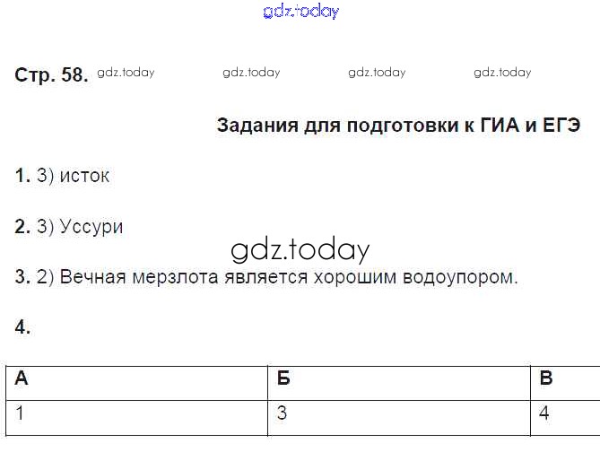 Ответы к Страницы (решение) 58 Рабочей тетради по Географии для 8 класса Ким, Марченко Дрофа УМК 2016