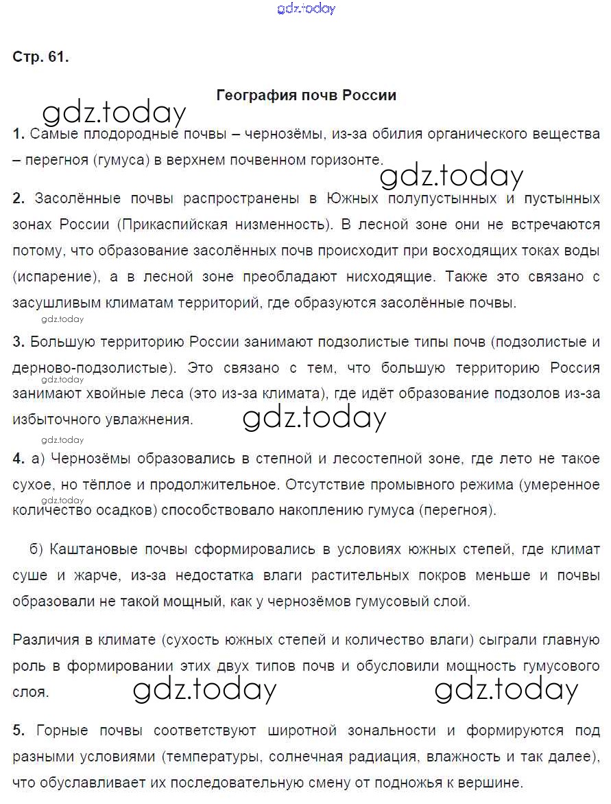 На страницах сайта gdz.today вы найдете учебный и вспомогательный материал, направленный на улучшения знаний школьной программы. ГДЗ - онлайн мир знаний Страницы (решение) 61 Рабочей тетради по Географии для 8 класса Ким, Марченко Дрофа УМК 2016