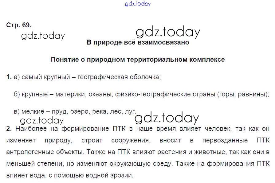 На страницах сайта gdz.today вы найдете учебный и вспомогательный материал, направленный на улучшения знаний школьной программы. ГДЗ - онлайн мир знаний Страницы (решение) 69 Рабочей тетради по Географии для 8 класса Ким, Марченко Дрофа УМК 2016