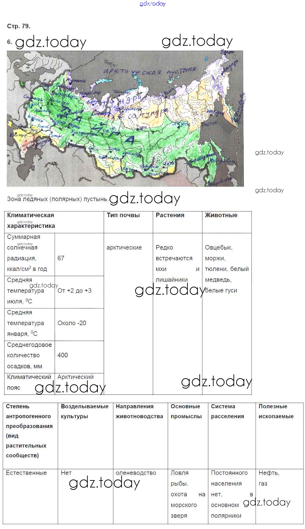На страницах сайта gdz.today вы найдете учебный и вспомогательный материал, направленный на улучшения знаний школьной программы. ГДЗ - онлайн мир знаний Страницы (решение) 79 Рабочей тетради по Географии для 8 класса Ким, Марченко Дрофа УМК 2016