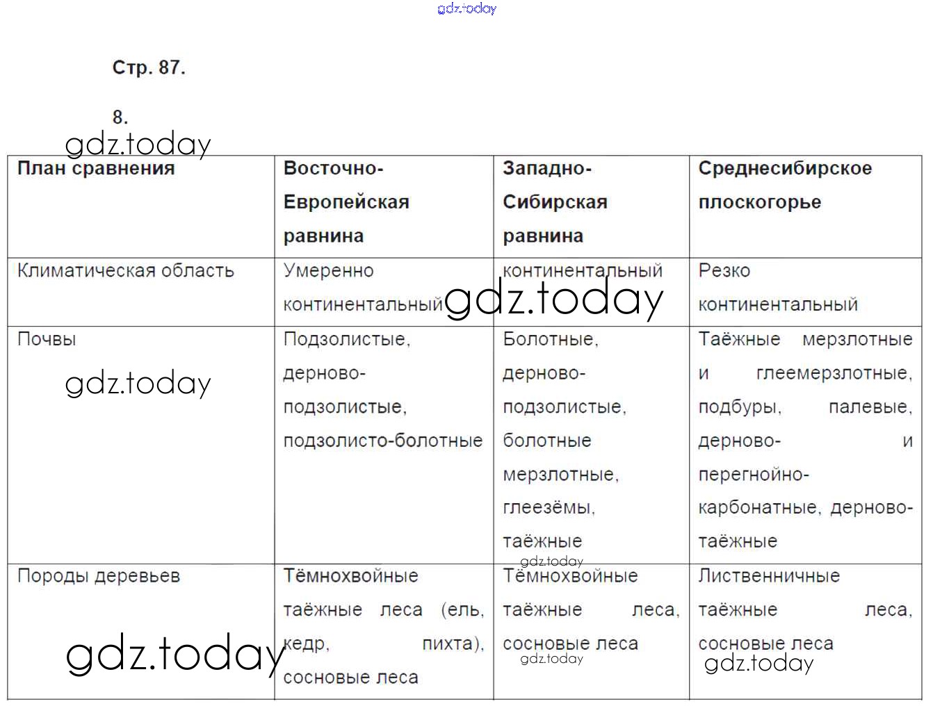 Ответы к Страницы (решение) 87 Рабочей тетради по Географии для 8 класса Ким, Марченко Дрофа УМК 2016