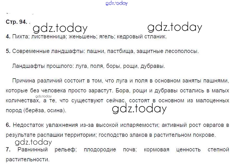 На страницах сайта gdz.today вы найдете учебный и вспомогательный материал, направленный на улучшения знаний школьной программы. ГДЗ - онлайн мир знаний Страницы (решение) 94 Рабочей тетради по Географии для 8 класса Ким, Марченко Дрофа УМК 2016