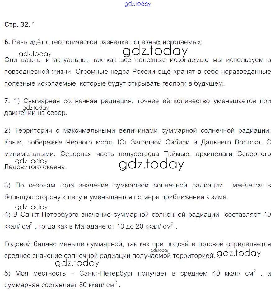 На страницах сайта gdz.today вы найдете учебный и вспомогательный материал, направленный на улучшения знаний школьной программы. ГДЗ - онлайн мир знаний Страницы (решение) 32 Моему тренажёру по Географии для 8 класса Николина Просвещение Полярная звезда 2016