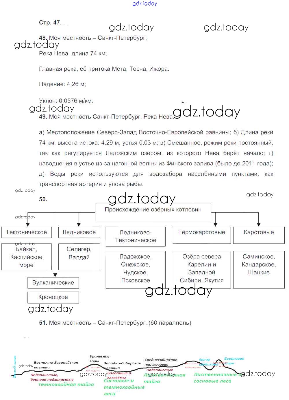 На страницах сайта gdz.today вы найдете учебный и вспомогательный материал, направленный на улучшения знаний школьной программы. ГДЗ - онлайн мир знаний Страницы (решение) 47 Моему тренажёру по Географии для 8 класса Николина Просвещение Полярная звезда 2016