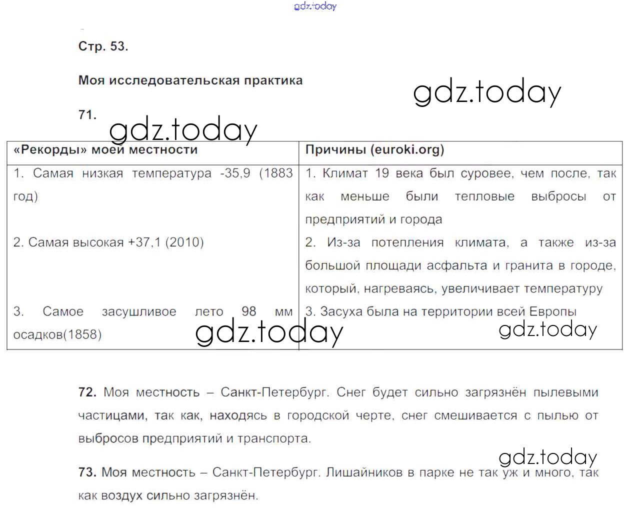 На страницах сайта gdz.today вы найдете учебный и вспомогательный материал, направленный на улучшения знаний школьной программы. ГДЗ - онлайн мир знаний Страницы (решение) 53 Моему тренажёру по Географии для 8 класса Николина Просвещение Полярная звезда 2016