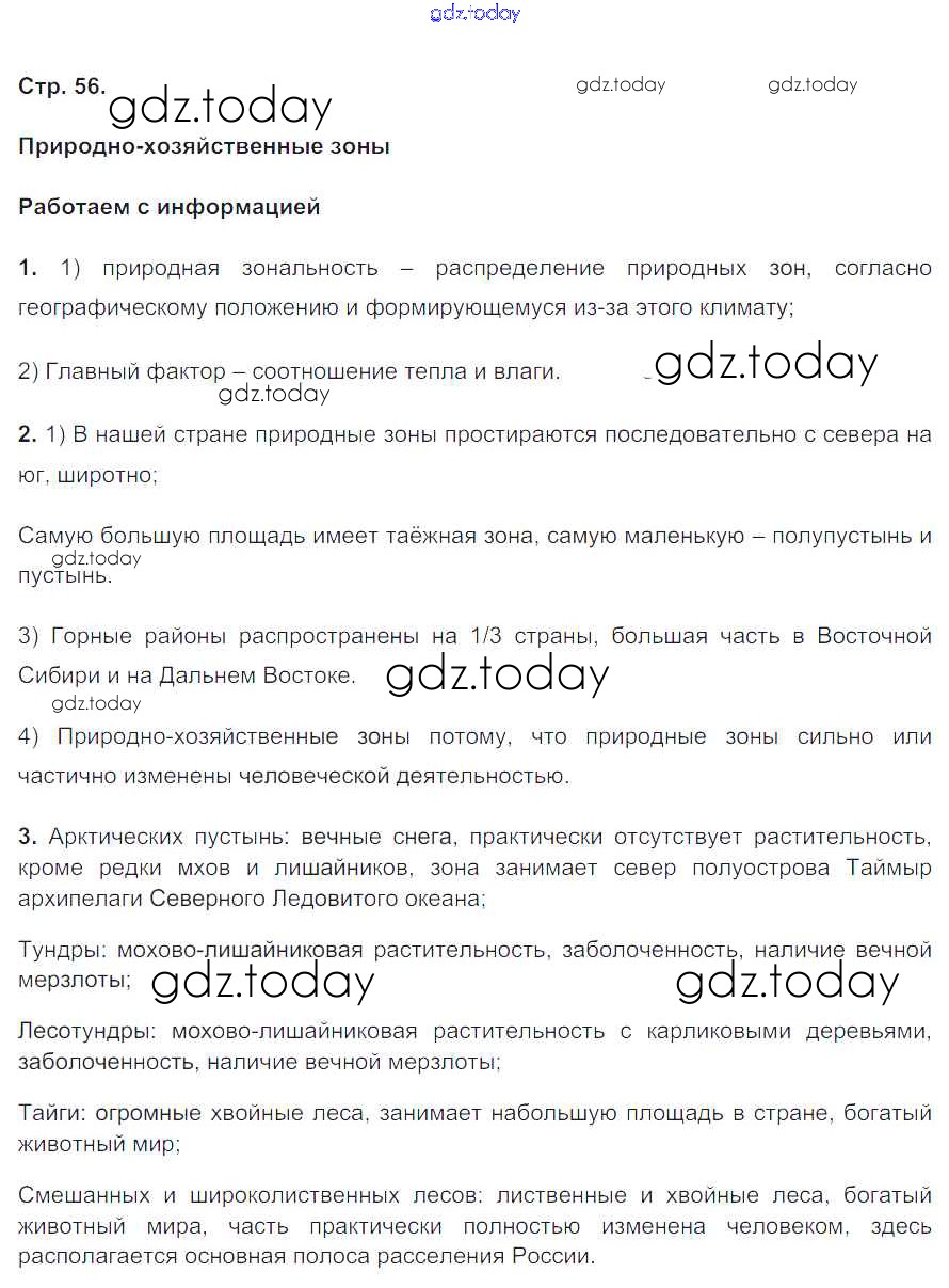 На страницах сайта gdz.today вы найдете учебный и вспомогательный материал, направленный на улучшения знаний школьной программы. ГДЗ - онлайн мир знаний Страницы (решение) 56 Моему тренажёру по Географии для 8 класса Николина Просвещение Полярная звезда 2016