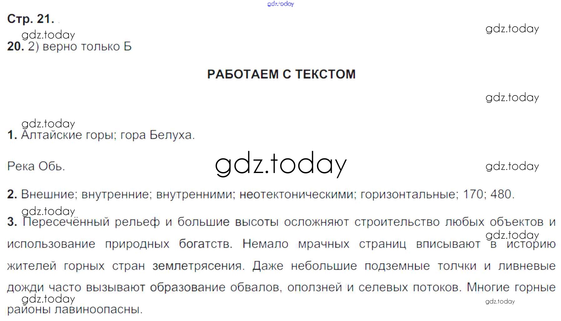 На страницах сайта gdz.today вы найдете учебный и вспомогательный материал, направленный на улучшения знаний школьной программы. ГДЗ - онлайн мир знаний Страницы (решение) 21 Тетради-тренажеру по Географии для 8 класса Ольховая, Банников Просвещение Сферы 2016