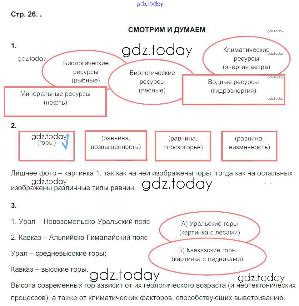 На страницах сайта gdz.today вы найдете учебный и вспомогательный материал, направленный на улучшения знаний школьной программы. ГДЗ - онлайн мир знаний Страницы (решение) 26 Тетради-тренажеру по Географии для 8 класса Ольховая, Банников Просвещение Сферы 2016