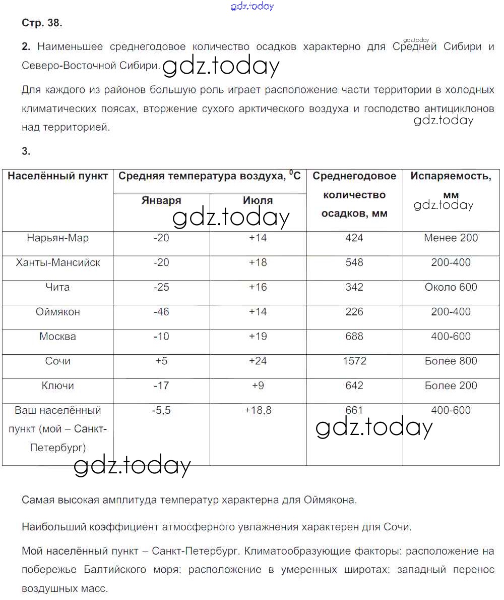 Ответы к Страницы (решение) 38 Тетради-тренажеру по Географии для 8 класса Ольховая, Банников Просвещение Сферы 2016