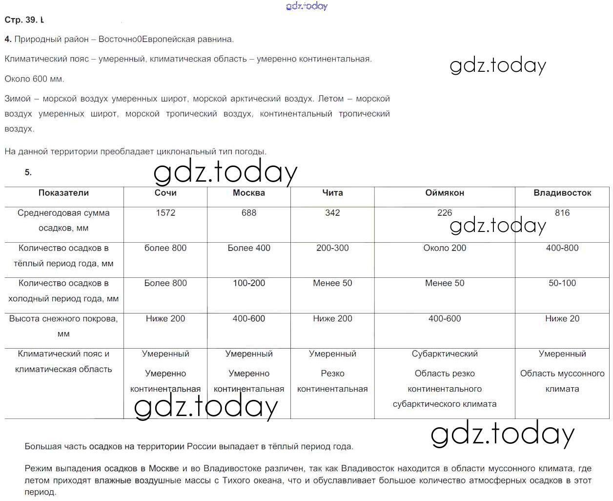 Ответы к Страницы (решение) 39 Тетради-тренажеру по Географии для 8 класса Ольховая, Банников Просвещение Сферы 2016