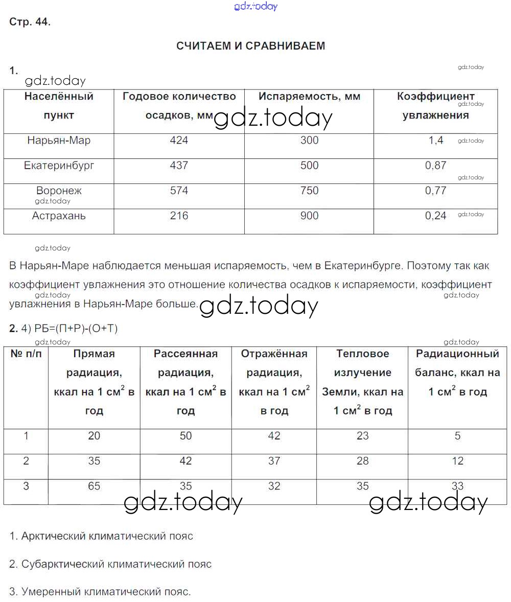 На страницах сайта gdz.today вы найдете учебный и вспомогательный материал, направленный на улучшения знаний школьной программы. ГДЗ - онлайн мир знаний Страницы (решение) 44 Тетради-тренажеру по Географии для 8 класса Ольховая, Банников Просвещение Сферы 2016