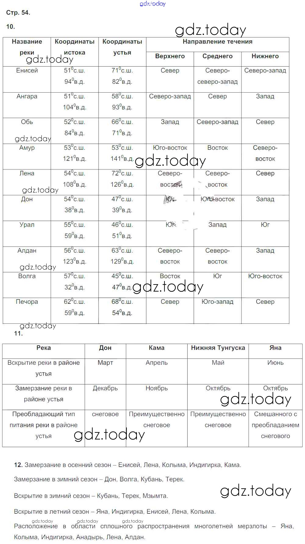 Ответы к Страницы (решение) 54 Тетради-тренажеру по Географии для 8 класса Ольховая, Банников Просвещение Сферы 2016