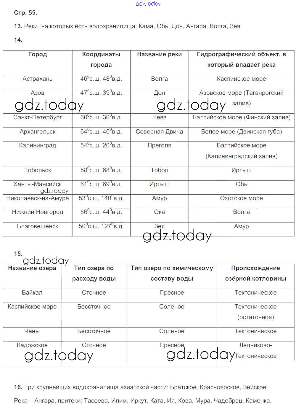 Ответы к Страницы (решение) 55 Тетради-тренажеру по Географии для 8 класса Ольховая, Банников Просвещение Сферы 2016