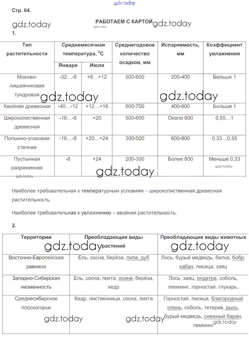 На страницах сайта gdz.today вы найдете учебный и вспомогательный материал, направленный на улучшения знаний школьной программы. ГДЗ - онлайн мир знаний Страницы (решение) 64 Тетради-тренажеру по Географии для 8 класса Ольховая, Банников Просвещение Сферы 2016