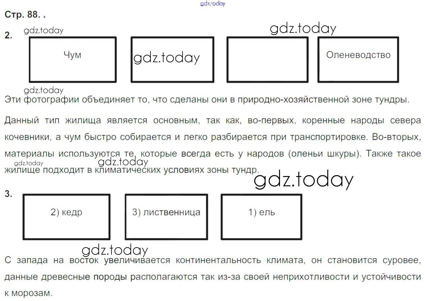 На страницах сайта gdz.today вы найдете учебный и вспомогательный материал, направленный на улучшения знаний школьной программы. ГДЗ - онлайн мир знаний Страницы (решение) 88 Тетради-тренажеру по Географии для 8 класса Ольховая, Банников Просвещение Сферы 2016